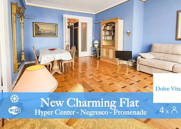 Vecchio Palais Mary Promenade 4 Pers Ac Wifi Appartement is uitgerust met zelfvoorzienende faciliteiten zoals een koffie/theezetapparaat, een koelkast en keukengerei, zodat gasten hun eigen maaltijden kunnen bereiden. Rosa Bonheur / Promenade bushalte is in de buurt van het appartement gesitueerd.